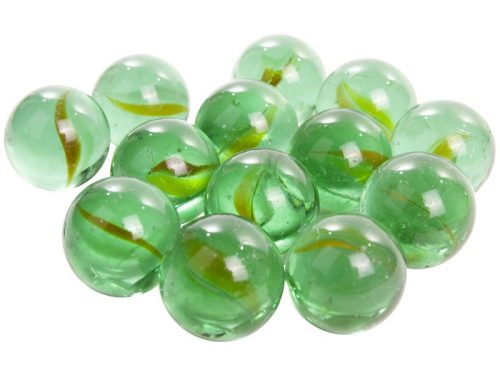 Zöld színű átlátszó üveggolyók, nagyobb méretben! Az Üveggolyó 12 darabos készlet szépen csillogó, sötétzöld színű golyókat tartalmaz, hálóba csomagolva. Az üveggolyók szépen gurulnak, akár többféle játékot is játszhattok velük, a hálóban hagyva markolászd, tartsd a tenyeredben, és érezheted a stresszoldó hatást is. Az Üveggolyó 12 darabos készlet golyóinak átmérője: 25 mm.