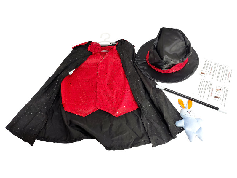 Húzd ki kalapodból a kis nyuladat! A Varázsló jelmez varázspálcájával most könnyedén ki tudod varázsolni a fekete karimás keménykalapodból a plüss kék színű nyuszit! Öltsd hát fel a mágikus kosztümöt, és bűvöld el a nézőközönségedet! A Varázsló jelmezt 3-8 éves korig ajánljuk.