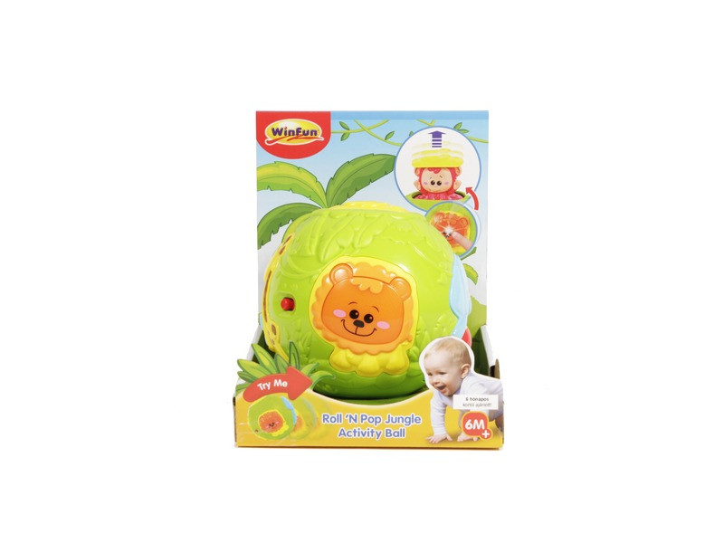 Ugraszd ki a kismajmot a labda belsejéből! A Világító dzsungel labda bébijáték egy műanyagból készült színes golyó, a dzsungelben élő állatokkal díszítve. Az elefánt pocakja csörgő golyót rejt magában, a zsiráf nyaka karikákkal van díszítve, és ha megnyomod az oroszlánt, a játék világítani, zenélni kezd, és a labda tetején előugrik a piros kismajom is! A labda gyorsan gurul, ezért fejleszti a baba mozgékonyságát, ügyességét, és a megfigyelést is. A játék 2 darab AA ceruzaelemmel működik, a csomagolás az elemeket tartalmazza. A Világító dzsungel labda bébijáték átmérője: 15 cm. Tovább olvasom Bezár