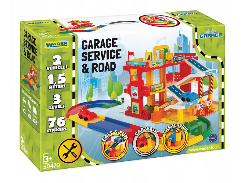 3 emeletes parkolóház, töltőállomással, autómosóval, szervizzel, egy kis autópálya szakasszal és 2 autóval? A Wader autópálya- szervizgarázs készletében ezt mind megtalálod! A Wadertől megszokott kiváló minőségű, tartós játék amit éveken át használhatnak a gyerekek. Az elemek könnyen összeilleszthetőek, és a gyerekek kedvük szerint helyezhetik el a matricákat, ezzel ők véglegesíthetik a színes építményt. Ideális ajándék fiúknak és persze az autókért rajongó lányoknak is. A szerviz, a benzinkút, az autómosó és az egyes szintekre vezető emelkedők mind sok-sok izgalmat rejtenek magukban, szerepjátékra csábítják a gyerekeket. A szerepjátékok nagyon fontos szerepet játszanak a gyerekek életében: segítenek a mindennapi élmények és érzelmek feldolgozásában, a világról megismert megannyi új információ befogadásában, hozzájárulnak az érzelmi intelligencia fejlesztéséhez. A szett tartalma: 3 emeletes parkolóház, 1,5 méter út, 76 matrica, 2 játékautó, kiegészítők.