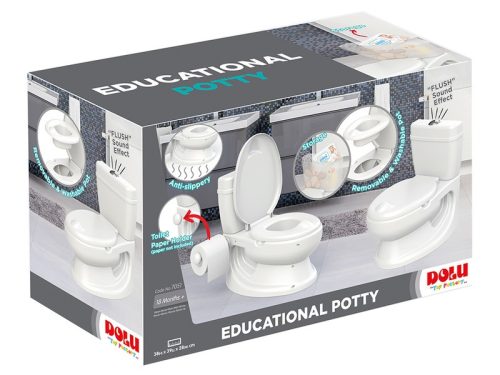 Szokj át a pelenkáról a bilire! A Wc alakú bili öblítés hangjával végre úgy csinálhatsz, mint a nagyok! Ha érzed a természet hívó erejét, próbálj mielőbb a fürdőszobába menni, hogy a mini wc-re ülve könnyíthess magadon. Ha végeztél, használd a papírgurigát, majd utánozd szüleid mozdulatait, és nyomd meg a tartáj gombját, hogy leöblítsd a végtermékedet (a játékban nincs víz). A Wc alakú bili belső edénye könnyen kiemelhető, így a tisztítása is egyszerű. A termék csomagolásának méretei: 39 x 28 x 38 cm. A játékot 18 hónapos kortól ajánljuk. Tovább olvasom Bezár