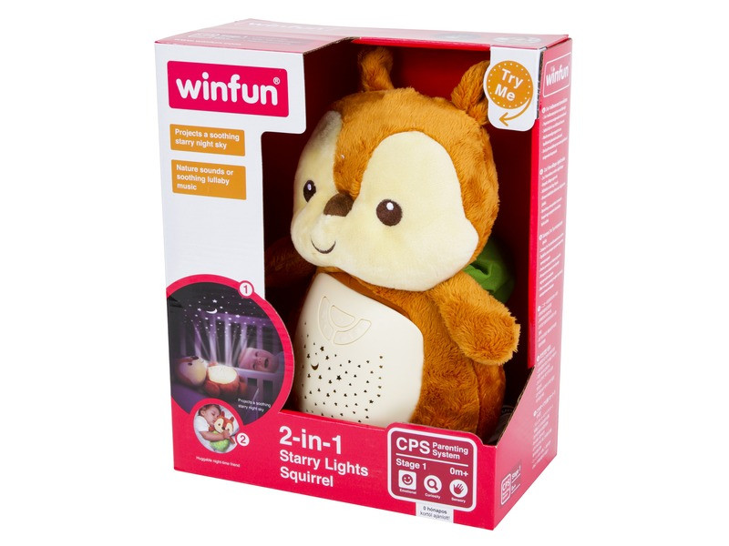 Szereted az erdei állatokat? Lehet, hogy épp a mókusok a kedvenceid? És mit szólsz ha azt mondjuk, hogy van egy mókus, aki nem csak ölelnivalóan puha és cuki, de még lágyan világít is, ha akarod, projektor-pocakján keresztül csillagokat varázsol a plafonra, sőt, még zenél is neked? A Winfun elhozta neked ezt a varázslatosan sokoldalú baba játékot, akivel édesebb az esték, a lefekvésre való készülődés, és édesebbek az álmok is. Ez az imádnivaló kis plüss játékfigura minden bizonnyal az egyik kedvenc alvós barátod lesz. A kedves bébijáték gyengéd esti fénye segíthet abban, hogy a gyerekek biztonságban érezzék magukat az éjszaka sötétjében is, és gombnyomásra lágy altató dalokkal és a természet hangjaival segíti az álomba szenderülést is. Ki ne szeretne így szundítani? A kedves kis mókus segít a világ érintéssel való felfedezésében, fejleszti az érzékelést. Ideális ajándék babáknak, fiúknak és lányoknak egyaránt. A mókus mérete: 22 cm Tovább olvasom Bezár