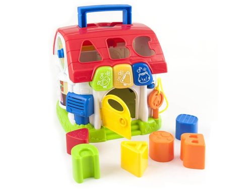 Winfun: Első házikóm formakereső bébijáték Találd meg, melyik lyukon melyik formát kell bedobni! Az Első házikóm formakereső bébijáték egy műanyagból készült ház piros tetővel, ami fényeket és hangokat is ad ki magából. A házikó tetején különböző formákat lehet a házba nyomni, a ház fala körbe-körbe fel van szerelve mindenféle csörgő-zörgő bébijátékkal is. A játék fejleszti a szem-kéz koordinációt, a megfigyelést, miközben a színeket és a formákat is meg tudja tanulni a pici. A játék 2 darab AA ceruzaelemmel működik, a csomagolás az elemeket tartalmazza. Az Első házikóm formakereső bébijáték méretei: 18 x 17 x 18 cm. Tovább olvasom Bezár
