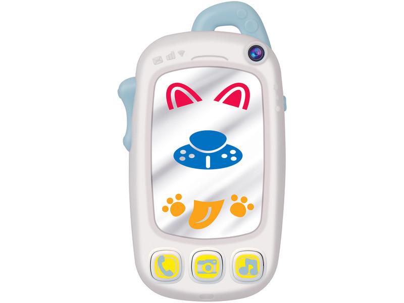 Winfun: Első mobiltelefonom A babák első mobiltelefonja egy igazi fejlesztő, szórakoztató játék a legkisebbeknek. Az ergonomikus formatervezésnek köszönhetően a pici kezek könnyedén nyomkodhatják a gombokat és megfigyelhetik, mi történik egyes gombok megnyomásakor. A világító kijelzőn nemcsak képeket, effekteket láthatunk, de a gombokkal hangokat is ki lehet adni. A kamera gomb lenyomásával a kijelzőn vicces effektek jelennek meg, ez szórakoztató meglepetéseket tartalmaz a telefonáló számára. A telefon oldalsó gombjainak megnyomásakor kattanás hang hallható, a többi gomb pedig érdekes és vicces hangokat ad ki. A vidám dallamok, kifejezések és hanghatások igazán nagyszerű mókát ígérnek. Ez a műanyag bébijáték elemmel működik, melyet a csomagolás tartalmaz. Nagyszerű és vidám fejlesztő játék már a legkisebbeknek is, fókuszban a finommotorika, a megfigyelőkészség és a logika, na persze mindez hatalmas kacajokkal és jókedvvel ötvözve. Tovább olvasom Bezár