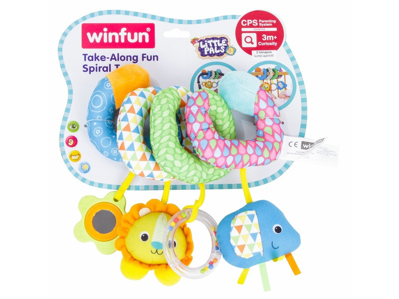 Winfun: Kiságyra, babakocsira tekerhető plüss Tedd játékosabbá a mindennapokat a Kiságyra, babakocsira tekerhető plüssel! Nem csak cuki, de kognitív képesség fejlesztő is. A különböző textúrákat tapintva, az egymáshoz érő felületek zizegését és a csörgő zörgését hallgatva, az élénk, kontrasztos színekben gyönyörködve, a tükör mozgó képét nézve, és a lifegő játékokat rágcsálva stimulálódnak és fejlődnek gyermeked érzékszervei. Tökéletes választás újszülötteknek is! A Kiságyra, babakocsira tekerhető plüss méretei: 20 x 18 x 8 cm.