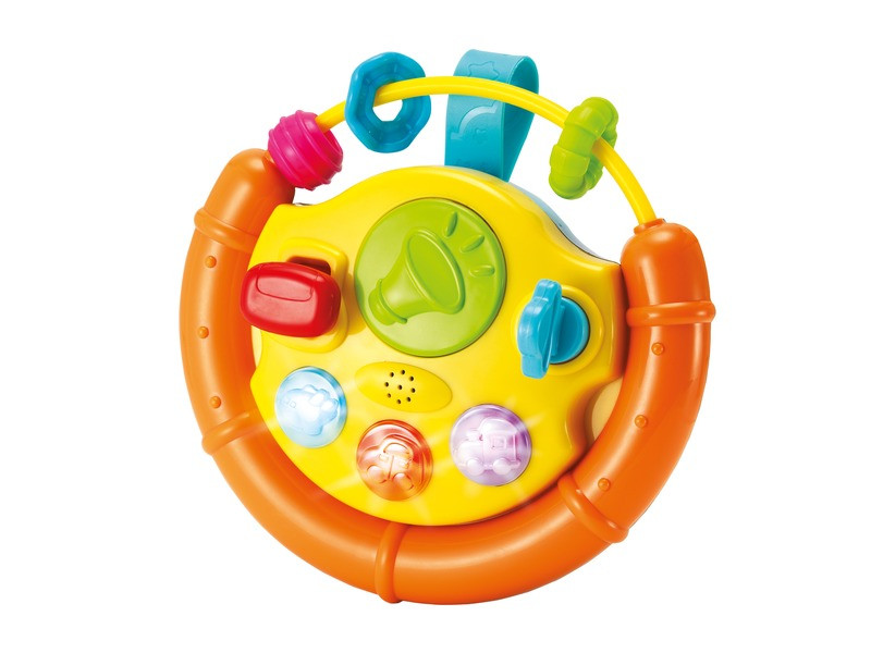 Winfun: Zenélő-világító bébikormány Kisebb bébikormány, amivel a pici megtanulhat vezetni! A Zenélő-világító bébikormány egy kerek, műanyagból készült bébijáték, valós autóhangokkal. A kormányon lévő gombok világítanak, a kormány tetején karikák vannak, amik rázás hatására csörögnek és zörögnek. A bébikormány felfogatható a babaágyra és az autósülésre is, utazás közben a pici utánozhatja a szüleit, ahogy vezetnek. A játék 2 darab AA ceruazelemmel működik, a csomagolás az elemeket tartalmazza. Tovább olvasom Bezár