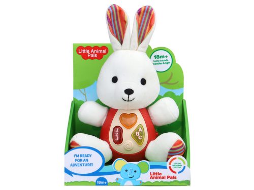 Zenélő, világító altató nyuszi Melyik baba ne szeretné a cuki állatokat? Ez a pihe-puha nyuszi finom tapogatni, fogni- és ölelni való felületekkel, lágy dallamokkal és finom fényekkel kedveskedik a legkisebbeknek. Ezzel a kedves kis állatfigurával édesebb az esték, a lefekvésre való készülődés, és édesebbek az álmok is. Ez az imádnivaló plüss játékfigura minden bizonnyal az egyik kedvenc alvós barátod lesz. A zenélő bébijáték gyengéd fénye segíthet abban, hogy a gyerekek biztonságban érezzék magukat az éjszaka sötétjében is, és lágy altató dalokkal segíti az álomba szenderülést. 2 db AAA-s elemmel működik, a csomagolás nem tartalmazza. Tovább olvasom Bezár