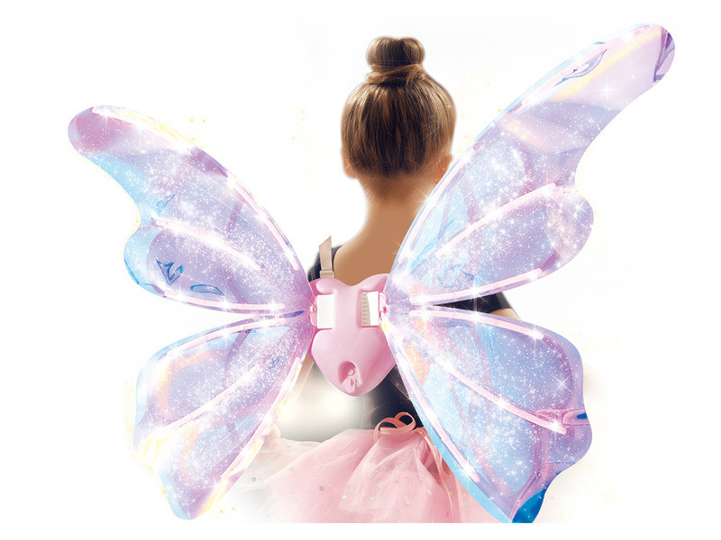 Zenélő, világító angyalszárny Légy Te az est fénypontja ezzel a mesés zenélő, világító angyalszárnnyal! A gyönyörű, áttetsző szárnyak káprázatos fényjátékkal és bájos zenével varázsolják el a kicsiket. A bekapcsolás után a szárnyak világítani kezdenek, miközben hangulatos dallamok szólnak – így garantált a varázslatos játékélmény! Ideális jelmez kiegészítő farsangra, szülinapi bulira vagy akár otthoni szerepjátékhoz is. Könnyen rögzíthető vállpántokkal, így kényelmes viseletet biztosít.