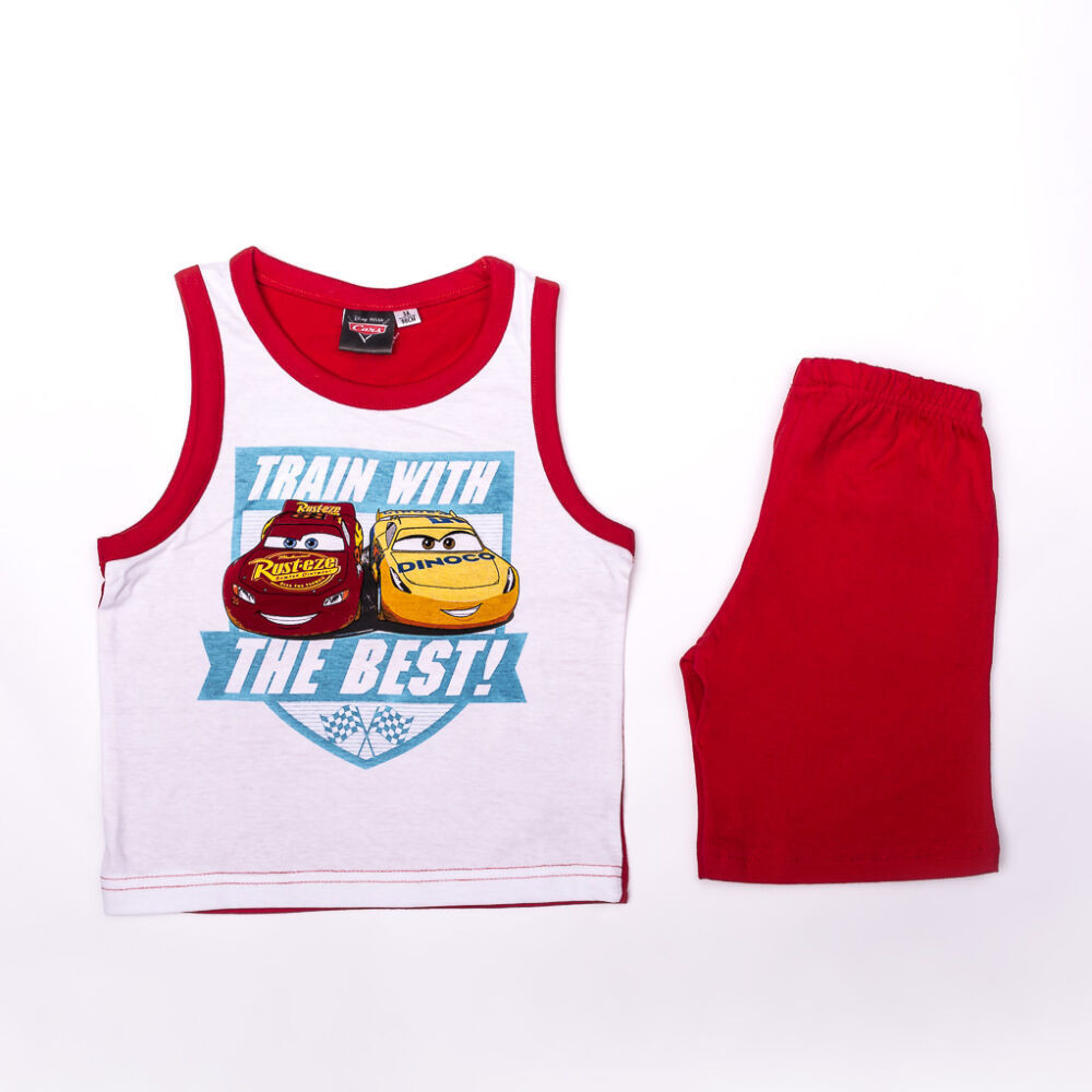 Verdák kisfiú pamut nyári együttes - trikó-rövidnadrág szett -piros - 122
