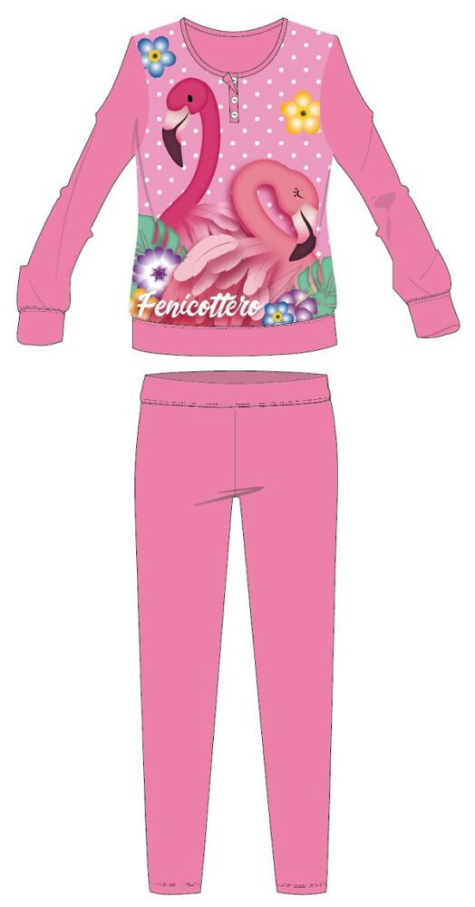 Flamingó téli vastag gyerek pizsama - pamut flanel pizsama - rózsaszín - 110