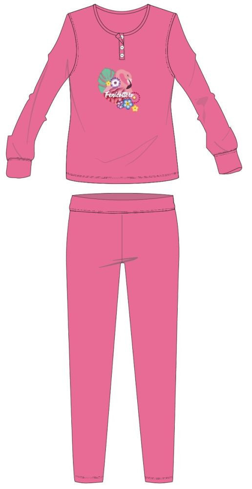 Flamingó téli pamut gyerek pizsama - interlock pizsama - rózsaszín - 110