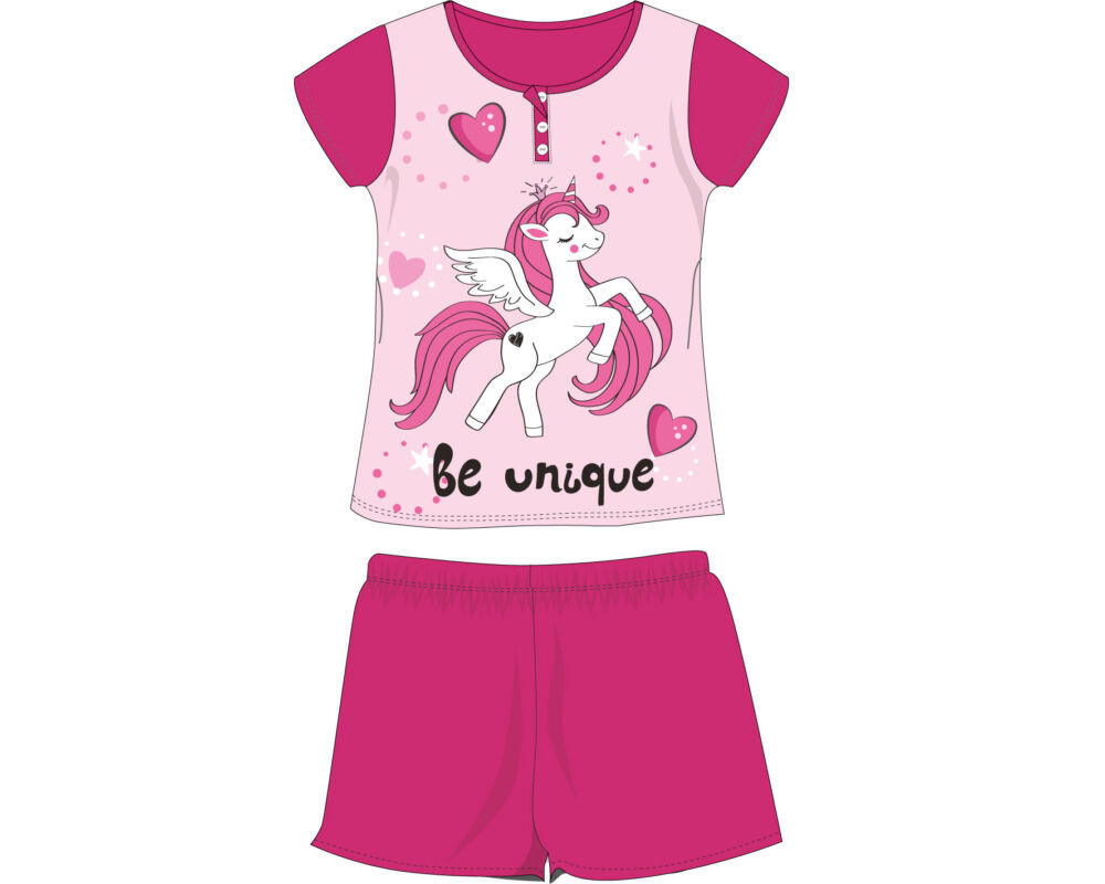 Nyári rövid ujjú gyerek pamut pizsama - Unikornis - pink - 128