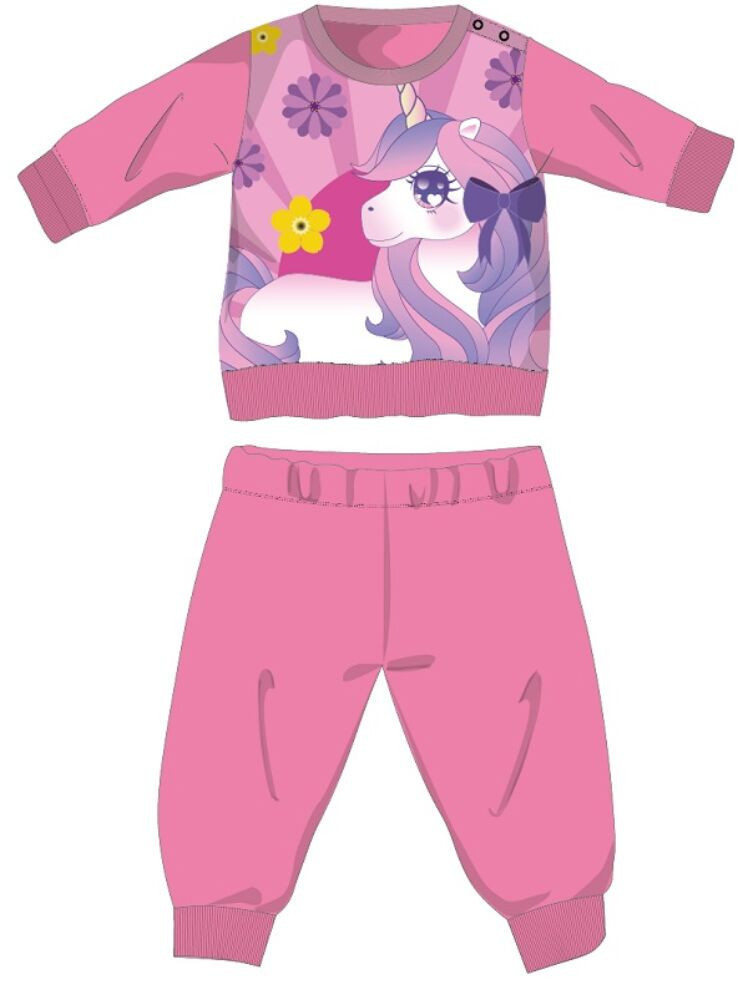 Unikornis téli vastag baba pizsama - pamut flanel pizsama - rózsaszín - 98
