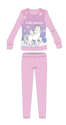 Unikornis téli vastag gyerek pizsama - pamut flanel pizsama - világosrózsaszín - 128