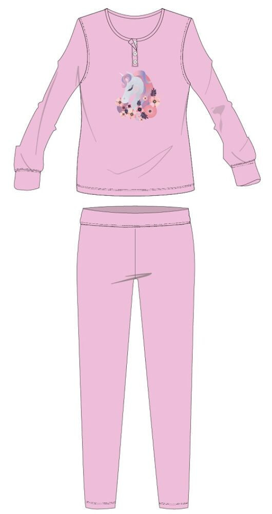 Unikornis pamut flanel pizsama - téli vastag gyerek pizsama - világosrózsaszín - 134-140