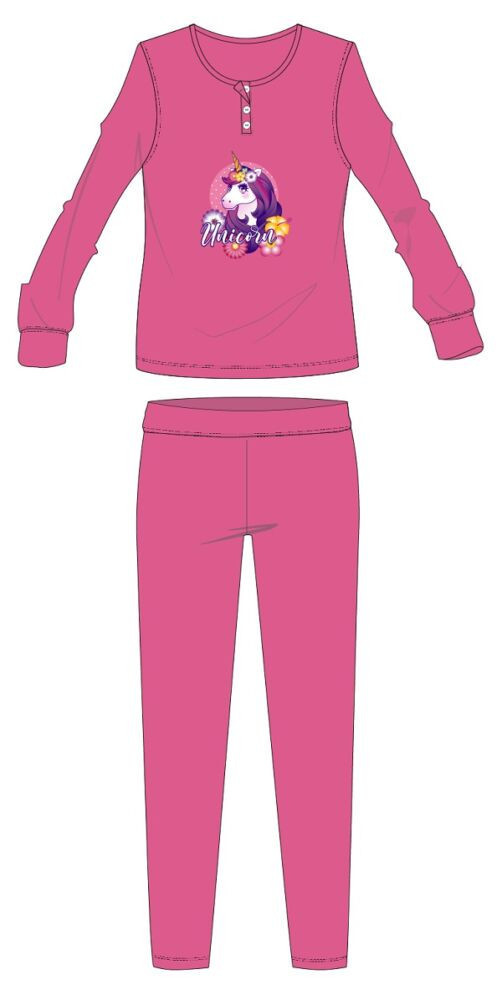 Unikornis téli pamut gyerek pizsama - interlock pizsama - rózsaszín - 116