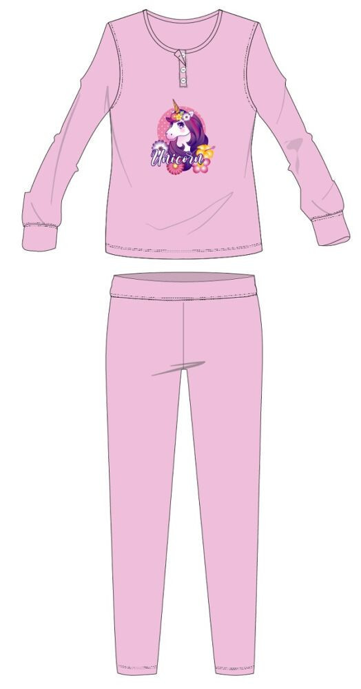 Unikornis téli pamut gyerek pizsama - interlock pizsama - világosrózsaszín - 116