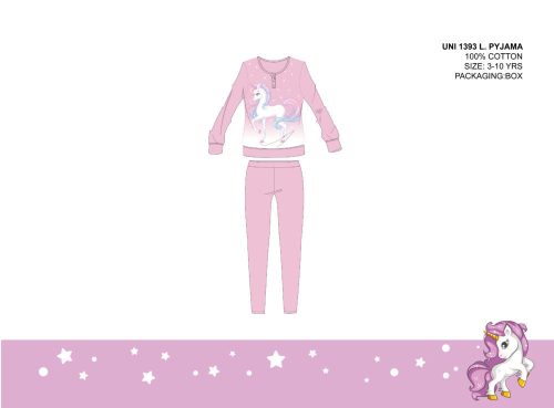 Unikornis vékony pamut gyerek pizsama - jersey pizsama - világosrózsaszín - 104