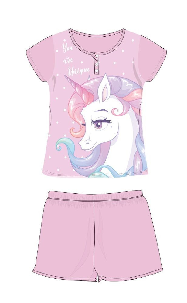 Unikornis nyári rövid ujjú gyerek pizsama - pamut jersey pizsama - világosrózsaszín - 116