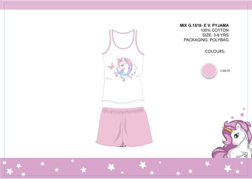 Unikornis nyári ujjatlan gyerek pizsama - pamut pizsama - világosrózsaszín - 98